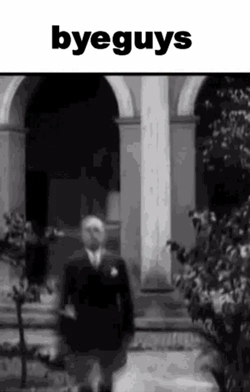 Say goodbye with the Bye Chat Goodbye GIF featuring a man in a suit with 'byeguys' below.