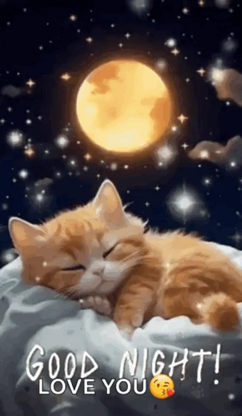 Cute Good Night Orange Kitten Moonlight GIF