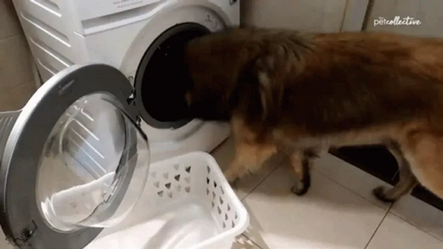 Dog Removing Laundry GIF