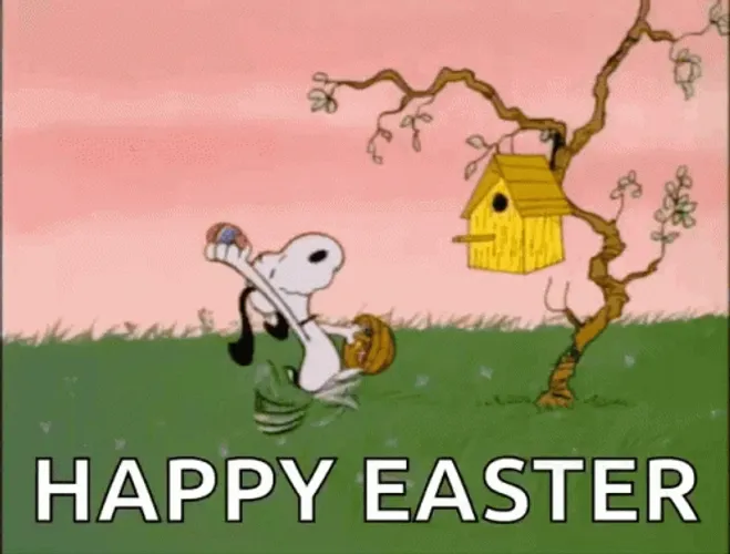 • Snoopy Throwing Easter Eggs Good Morning Happy Easter GIF