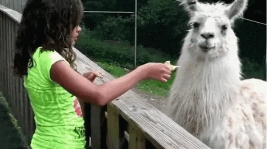 Girl Feeding Llama GIF