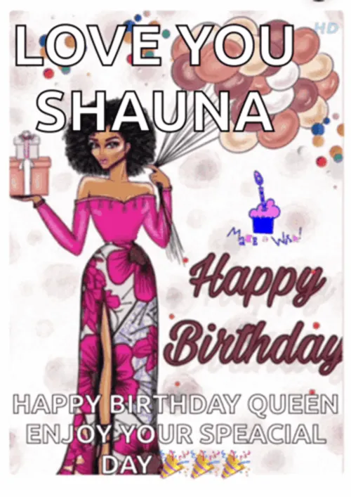 a birthday queen is sitting on a gift box holding balloons and a gift