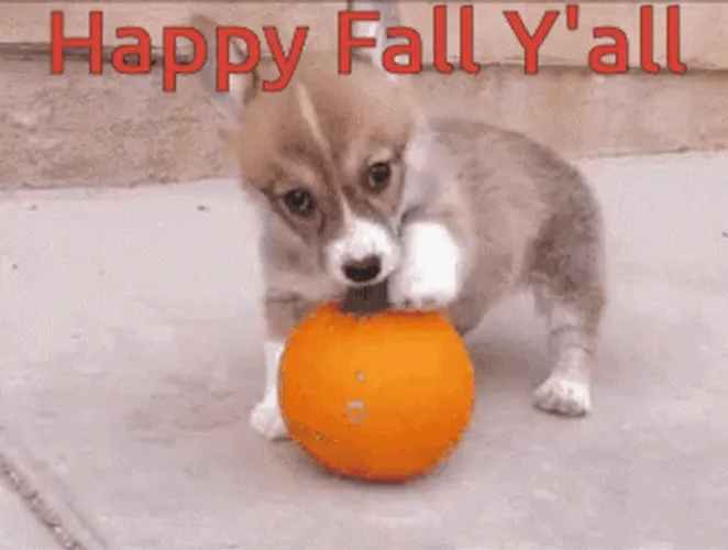 • Happy Fall Yall Puppy Playing With Orange GIF