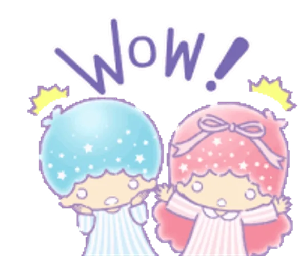 Wow! Little Twin Stars Kiki Sticker with two stars standing together and 'Wow' above—great for surprising reactions!