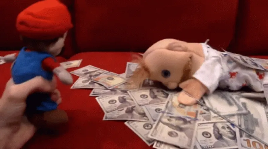 Mario Looking To Puppet Laying On Cash GIF