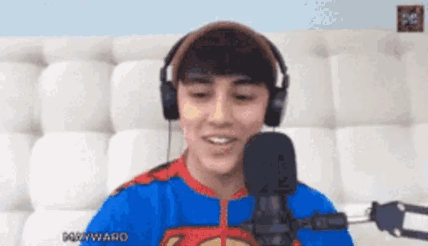 See the Mayward Maymay GIF of a young man with headphones and a Superman shirt speaking into a microphone.