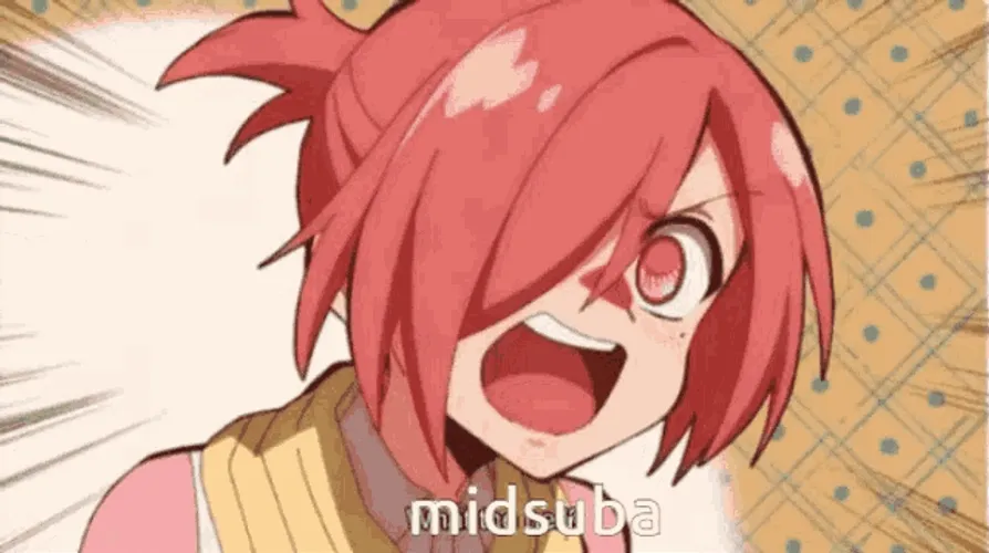 Enjoy a red-haired anime girl with 'Mitsuba' at the bottom in this vibrant GIF. Ideal for anime fans!