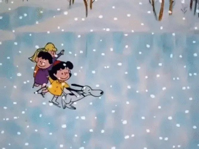 • Peanuts Characters Happy Ice Skating On Snow Day GIF