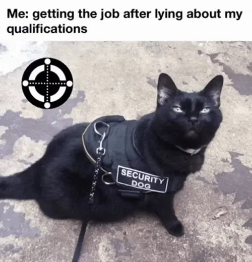 Security Cat Lying About Qualifications GIF