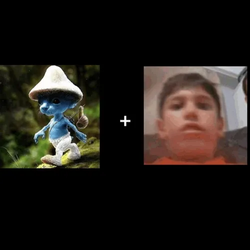 Smurf Cat With Young Boys Faces GIF