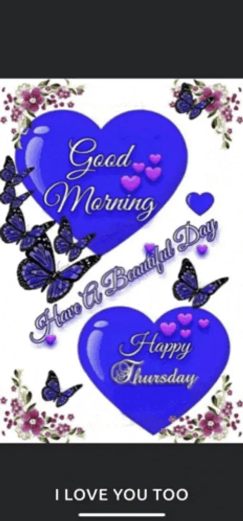 Start your Thursday with cheerful blue hearts and butterflies. Perfect good morning message to brighten up your day!