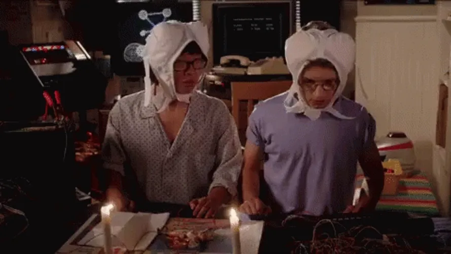 Weird Science Bra Around Face GIF